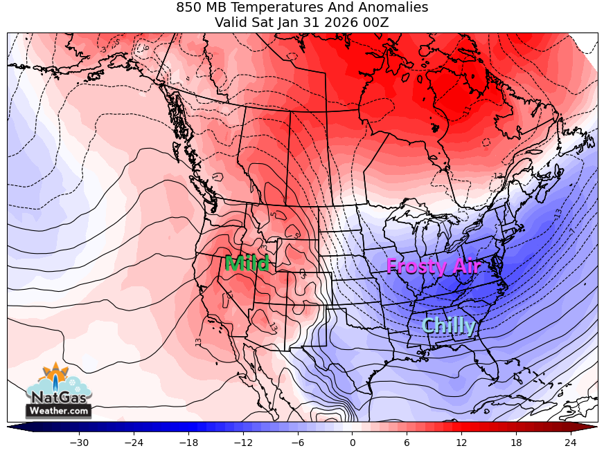 Jan 26-Feb 1: Dangerously cold air will continue across much of the Midwest, Plains, and East this week with w/lows of -20s to 20s, highs of 0s to 30s. This includes lows of -0s to 20s into Texas, the South, and Southeast the next couple days. A reinforcing frigid blast arrives late in the week. It will be mild over the West w/highs of 40s-70s. Overall, national demand will be Very High the next 7-days.